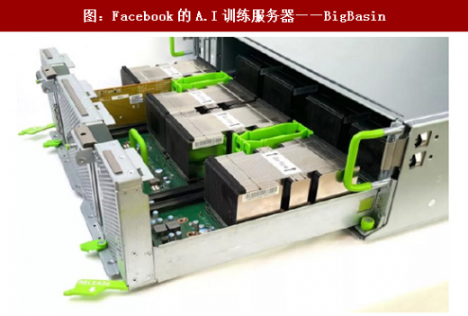 facebook于今年3月份发布的a.i训练服务器—bigbasin服务器,就是由配臵英伟达gpu的服务器搭建起来的。该服务器比之前的bigsur快了近一倍,训练规模也大了30%。该服务器可以帮助facebook进行图像、面部识别、实时翻译、理解并描述图片和视频内容,为facebook提供更多的应用以吸引用户。