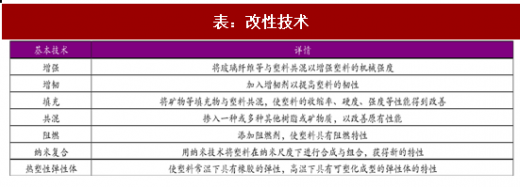 改性技术包括共混、填充、增强等物理方法和共聚、交联等化学方法,物理方法是目前最重要的改性方法,共混、填充等需要选用合适的改性剂、填料才能达到特定的改性目的。