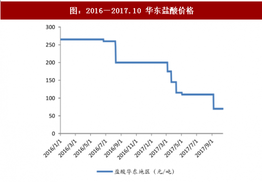 电石价格显著上涨。2017年华东地区一月和十月电石均价分别为3168元/吨、 3461 元/吨,涨幅为 6.09%,和 2016 年十月均价相比,涨幅为 15.17%。国内电石价格受到环保督查、运输成本增加等多种因素影响,呈现上涨趋势。我们判断未来电石价格或将保持上涨。对电石外购的企业来说,成本将增加,一体化企业成本优势将凸显。价格有一定降幅,但盐酸占 pvc 成本较低,对综合成本影响很小。