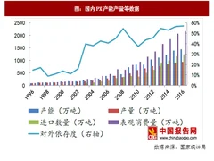 据统计,从2010年至2016年底,我国px产能仅从826万吨/年增长至1,440万吨/年,众多px项目都未能如期投产,带来的结果是,我国每年的px进口量一直居高不下,对外依存度逐年上升,2016年已经接近60%。px产能的严重不足,导致了px的价格一直居高不下,下游聚酯行业一直承受着较大的成本压力。