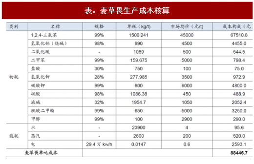 下游需求回暖,麦草畏价格将维持稳定,龙头企业竞争优势显现。目前北美市场双抗转基因作物推广顺利,孟山都2017年一季度扭亏,全年大豆和棉花种子销售同比增长23%和40%,毛利率分别提高6和10个百分点。麦草畏原药需求有望迎来放量。成本端全球经济回暖、页岩气供给有限带来原油价格复苏,麦草畏生产成本已经大幅提高。我们结合江苏长青农化南通有限公司的《建设项目竣工环境保护验收监测报告》(通环监验证字(2017)第015号)中的麦草畏生产物料及能耗数据,在不考虑人工、折旧的情况下,估算出麦草畏的生产成本为8.8万元/吨。随着未来需求放量、原油价格持续复苏复苏,麦草畏价格将维持稳定,行业龙头企业成本控制优势明显,在10万元/吨市场平均价格时行业龙头保持盈利,其他部分小产能企业出现亏损。