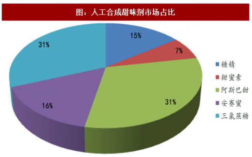 目前,甜味剂可以分为天然甜味剂和人工合成甜味剂两类,天然甜味剂主要有蔗糖、麦芽糖醇、、甜菊糖、索马甜几种,人工合成甜味剂主要有糖精、安赛蜜、三氯蔗糖几种。