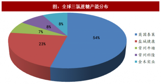我们认为,三氯蔗糖产品在最近几年内将会成为发展速度最快的新型甜味剂。三氯蔗糖是由英国泰莱公司与伦敦大学共同研制而成的。自1976年问世以来,经历了几十年的生化性能及毒性试验表明,三氯蔗糖没有致畸性、致突变性、繁殖毒性、致癌性以及神经毒性,对动物的血糖水平和胰岛素分泌量也无任何影响,被确认为“公认安全物质(gras)”。目前来看,全球三氯蔗糖一半以上的市场依然被英国泰莱所占领,剩余产能基本分布在中国,生产企业数量少,竞争环境良好。