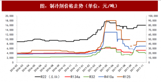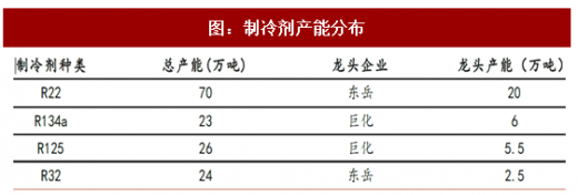 其次,从制冷剂行业本身来看,受配额制度、环保监管等因素影响,中小产能已经不具备竞争能力,多数正在进行配额的转让,未来,行业将逐渐走向寡头垄断的新格局。产能方面,2013年之后,几乎没有新建产能,仅有龙头企业的技改带来的增量,制冷剂产能将逐渐向巨化、东岳、三美等龙头企业集中。制冷剂竞争的格局的逐渐改善,将减少制冷剂价格的大起大落,未来将走稳中有升的涨价趋势。