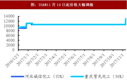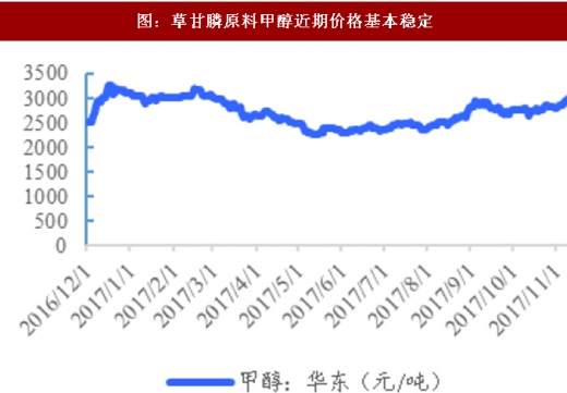同时idan(亚氨基二乙酸)受冬季限产以及下游需求旺季影响,11月10日价格大幅调涨1500-2500元至12000-13000元/吨。甲醇、多聚甲醛等草甘膦其他原料的价格近期则均以稳定为主。