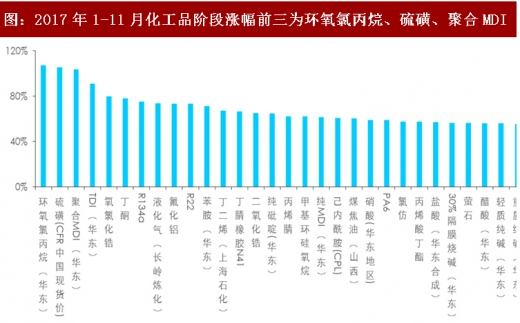 子行业中龙头公司明显具有超额收益,同一板块各公司走势分化较强,涨幅较大的万华化学、沧州大化、华鲁恒升、鲁西化工、扬农化工、中泰化学、三友化工等都是行业龙头,充分体现了今年市场由注重公司业绩弹性到青睐公司竞争力提升和盈利稳定性的转变。