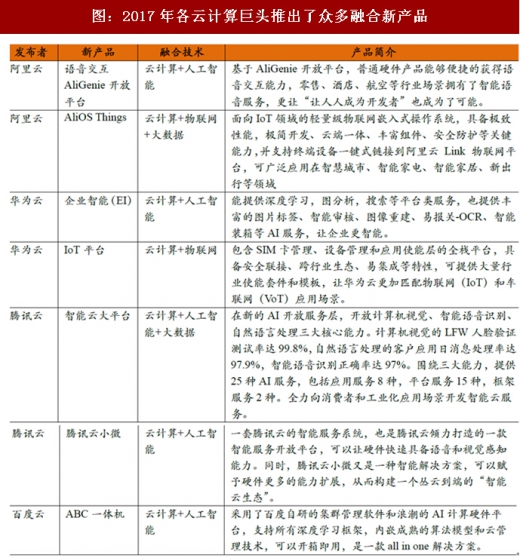 2017年6月,腾讯云首次发布ai战略新品——ai即服务的智能云;easystack发布全球首个支持gpu/fpga的人工智能开源云平台escouldai;