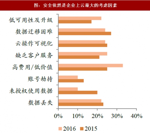 另一方面选择公共云时,安全性是客户最关心的问题。barracuda分析显示仅45%受访者相信在访问云应用时,iaas提供商将会启动强大的安全防护。微软《第22次安全情报报告》显示过去一年,遭到攻击的用户账户增加了30%,从恶意ip地址尝试登录的微软账户数量在2017年q1季度同比增加了44%,随着上云的增多,云安全产业有望进一步发展壮大。