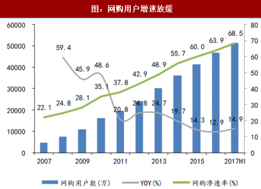 2011年以来,网购用户增速逐渐放缓,互联网人口红利减退,电商引流成本提高。
