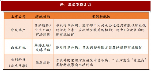 下面选取卧龙地产收购墨麟股份/卡乐互动/君海网络、山东矿机收购麟游互动/文脉互动、金利科技(众应互联)收购微屏软件等典型案例分析总结监管部门对游戏类资产的审核和关注要点。