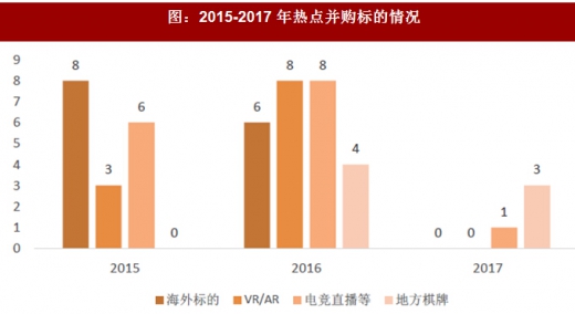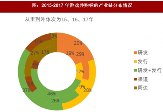 从被并购标的位于产业链位置来看,2017 年研发、发行和“研运一体”游戏标的合计占比高达85%,其中“研运一体”游戏公司占比达到37%,相较2016 年增加11 个百分点。