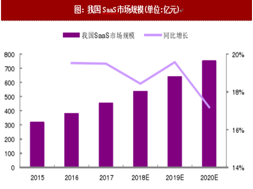 2017年,我国saas市场的年增速达到19%,市场规模已达452亿元,维持了2012年以来的快速增长势头。受益于国内saas市场的持续增长,越来越多的公司进入saas市场,互联网巨头阿里、腾讯等也推出了saas产品,布局云服务全产业链。预计未来我国saas行业的市场集中度将呈现下降趋势。oa,im也有望成为继crm之后领跑saas市场的云服务产品。