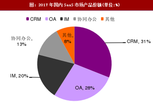 图:2017年国内saas市场产品份额(单位:%)