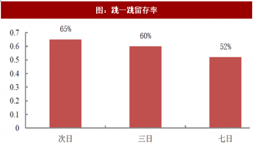 小游戏是更适合休闲游戏生长的土壤,不需要下载安装包,又有合格的流畅性。小游戏不是一场革命,过去传统的重度手机游戏依然有其生存空间,真正受到威胁的是h5游戏和“天天爱消除”这类。“跳一跳”的次日留存为65%,三日留存为60%,七日留存为52%,可以媲美一款非常活跃的app大作,相比h5游戏20%左右的留存率显著提升。