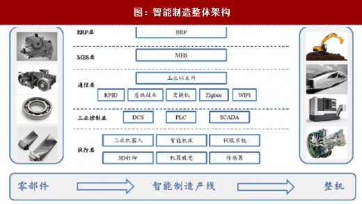 智能制造贯穿于产业升级始终。工厂内部的智能制造体系大致分为五层:最底层是设备层,或者叫执行层,包括工业机器人、机床、传感器等;然后是工业控制层,包括plc、dcs和scada等;再往上是工业通讯层,目前工业以太网是主流;再往上是mes,mes是工厂智能制造体系的核心,有效管控生产及工艺过程;最上层是erp,以财务为核心,与企业管理对接。