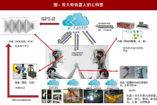 2015年,国产工业机器人龙头企业埃夫特开始布局下一代机器人技术,并在美国的硅谷成立了研发中心。2018年将会形成一个初步的云机器人平台产品。