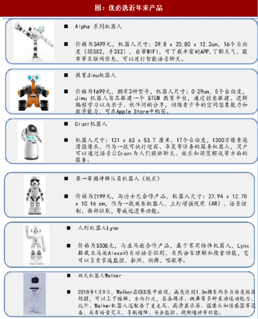 业收入实现跨越式发展的内在,是优必选近年来推出的多款机器人产品,除了最开始的alpha系列机器人以外,连续推出多款产品:教育jimu机器人、服务cruzr机器人,以及与迪士尼合作的第一军团冲锋队员机器人(娱乐)等多款产品,开辟了全新的消费级人形机器人市场、商用服务机器人市场以及ip机器人市场。