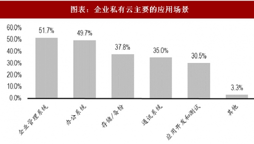 oa 系统(51.7%)、办公系统(49.7%)、存储系统(37.8%)是企业私有云主要的应用场景。