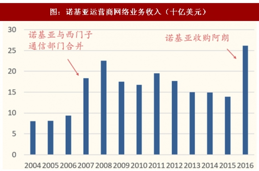 诺基亚与爱立信延续了2g时代的高速增长,直到2011年后营收逐年下滑。摩托罗拉在移动通信发展方向上再次出现误判,大力发展的wimax技术以失败告终,摩托罗拉最终于2010年将无线电业务出售给诺基亚。阿尔卡特收购朗讯后,朗讯的美式科学家文化与阿尔卡特的法式商业文化难以融合,阿朗在3g、4g中均未掌握核心技术话语权,且由于业务集中于运营商网络,净利润呈现明显周期性,面对营收的逐年下滑,最终于2016年被诺基亚收购,全球通信主设备商由5家减少至4家。