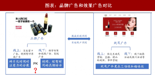 从广告的线上与线下角度来看,有观点认为线上投入的持续增加是否会挤压线下媒体广告的市场空间,我们的观点是线上与线下不是“非此即彼”的关系,线下专注品牌影响,线上专注效果营销,二者目标用户也不尽相同。 线上品牌广告效果<线下品牌广告。效果线上品牌广告主要为窗口、横幅广告或者视频暂停界面广告,夺取的是用户碎片化时间的注意力,而线下品牌广告主要为楼宇、影院广告,是封闭、短暂时间的高频暗示;从线上和线下广告的分工来看,线上广告争夺的是用户碎片化时间,线下广告争夺的是用户场景空间的注意力,我们认为碎片化时间和场景空间并不具备直接的、正面的竞争关系,公司在空间场景的品牌广告竞争力上拥有绝对优势。