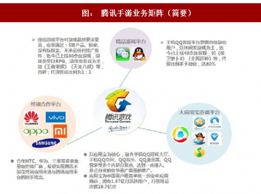 从资源上来看,腾讯的资源“自然是极好的”,无论是用户量大小、游戏业务矩阵、广告资源矩阵都是目前其他厂商不可比拟的。目前腾讯的独代产品,在手q和微信上都能占到一半的比例,表现好的产品得到的资源也十分丰盛,目前排名前五的《天龙八部》手游也是腾讯独代产品。分成上,腾讯一般为渠道后分成模式,独代产品目前在腾讯最高可分到30%左右,根据产品表现不同分成比例有所不同。腾讯平台的助力会把好产品的优势进一步放大,如《天龙八部》q2上线后一直排名前五,给研发商畅游带来了超预期的收益:畅游q2网络游戏收入为1.22亿美元,同比增长23%,环比增长43%,同比和环比增长主要是由于经典版《天龙八部》手游于第二季度成功上线,表现优异。腾讯在《天龙八部》上线后承担了所有的发行和推广工作和费用。