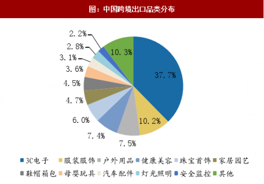 跨境出口电商成为我国优势制造业外销的重要途径。我国跨境出口电商的品类主要集中在3c电子、服装等传统优势产业上。根据中国电子商务研究中心统计,2016年我国跨境出口货品中,37.7%是3c电子类,10.2%是服装服饰类,其他户外用品、健康美容、珠宝首饰、家居用品、鞋帽箱包等也都是我国具备比较优势的细分行业,这与跨境进口主要以母婴奶粉、保健食品、化妆品等正好形成对比。所以跨境出口电商快速发展背后传达的是中国制造的强大优势。