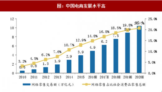 3)中国人力成本相对于发达国家较低,物流、快递业具备快速发展的良好条件,这为电商的发展提供了有力的支持。