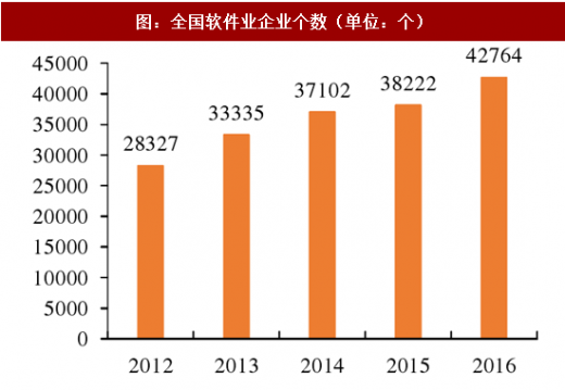 it 产业规模逐年扩大。根据工信部的统计数据,2012-2016 年中国 it 行业整体收入和利润增长快速,it 行业整体收入由 2012 年 24,787 亿元增长至 2016 年 48,511 亿元,整体利润由 2012 年 3,366 亿元增长至 2016 年 6,021 亿元,2016 年 it 行业的企业个数 2016 年高达 42,764 个,整体实现翻一番。