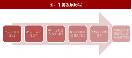 2009 年起,手机市场逐步迎来智能机时代,国内开始出现基于各类操作系统的智能机论坛,这些论坛成为玩家寻找游戏的入口,并提出了应用商店的概念。2012 年,国内手游行业终于迎来爆发期,市场规模的急剧扩大,使得大量资本开始涌入手游,更是有诸如《我叫 mt》、《王者之剑》、《时空猎人》、《刀塔传奇》等现象级产品不断涌现。而进入 2016 年,《皇室战争》、《王者荣耀》等实现玩家间即时对抗的游戏的诞生,标志着手游市场走向成熟。