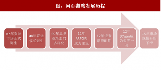 网页游戏(2007 年-至今)。网页游戏又称 web 游戏,无端网游,简称页游,是基于 web 浏览器的网络在线多人互动游戏,无需下载客户端。真正意义上的页游产生于 2007 年,最早期的页游是盛大《纵横天下》、猫扑网《猫游记》、上海维莱《部落战争》等游戏,这时期的页游大多是 slg 模拟策略为主。2009 年开始页游逐步呈现出多样化的发展趋势,arpg 类开始崭露头角,而到 2011 年新上市的游戏数量中 arpg 游戏类型产品已经完全压倒性地超越了 slg。也是在这一年,几乎无数的研发商一边倒的向 aprg 方向发展,经过几年的 flash 技术的沉淀和发展,页游迎来最辉煌的时期。