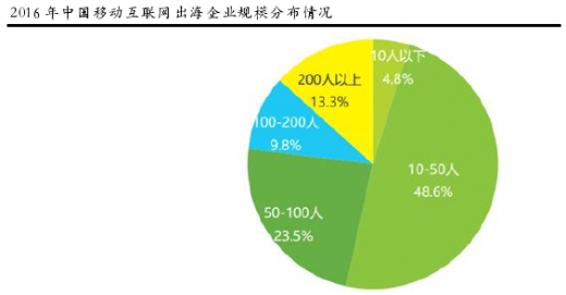 与以往大型互联网公司出海不同,越来越多中小企业走向海外,其中100人以下企业占比近80%,50人以下企业超过50%。