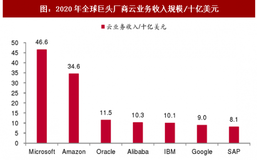 亚马逊、微软有望继续领跑公有云市场。根据morgan stanley的预测,到2020年全球公有云服务市场(包括iaas、paas、saas)还是由亚马逊和微软主导,云业务收入预计分别达到466亿美元、346亿美元,与第三名差距逐步拉大。