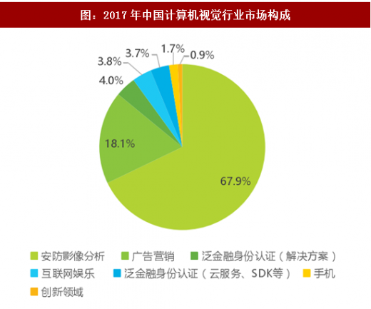2016年下半年,1:n人脸识别、视频结构化等计算机视觉相关技术在安防领域的实战场景中突破工业化红线,敲响了计算机视觉行业市场大规模爆发的前奏。伴随人脸识别、物体识别等分类、分割算法不算提升精度,在2017年占比较高的安防、视频广告、泛金融、手机及互联网娱乐领域之外,影像、工业制造、批发等现阶段的创新领域也将逐步解锁,成为行业整体快速发展的重要支撑。