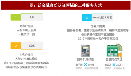 与计算机视觉公司的主要商业模式一致,泛金融身份认证也有api、sdk及金沙下载送彩金的解决方案三种服务方式。相比api及sdk的服务方式,一体化金沙下载送彩金的解决方案拥有更高的客单价和市场空间,但因包含诸多软硬件集成服务,难以将核心视觉技术相关收入单独剥离计算。
