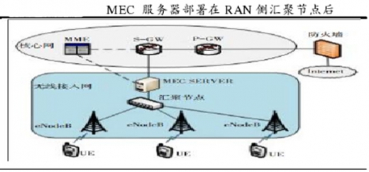 基于 4g epc 现网架构,mec 部署在 e node b 之后、s-gw 之前。mec 部署在基站汇聚节点后,即多个 e node b 共享一个 mec服务器。mec 服务器可以为单独网元,也可把 mec 的功能集成在汇聚点或 e node b 内。