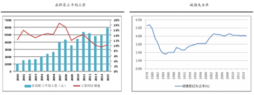 2000 年,我国 65 岁以上老人数为 8821 万人,占比接近 7%,标志着我国正式进入老龄化社会,预计到 2025 年,中国 65 岁以上老年人比例将达到 1/4,问题是中国 21 世纪最重要的话题之一。与此同时,人口增速也呈现下降趋势,80、90 年代年均人口增速在 1%以上,目前仅为 0.5%;此外,据新浪网报道,2012 年,中国 15-59 岁比上一年减少 345 万,占总人口比重的69.2%,比上年末下降 0.6%,系中国劳动年龄人口数量的首次下降,2013-2015 年,劳动年龄人口持续下降,截至 2015 年末,为 91096 万人,从这个角度讲,刘易斯拐点已经到来。