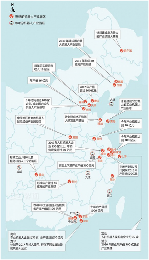 根据世界卫生组织预测,2050 年,中国将有 35%的人口超过 60 岁,成为世界上老龄化最严重的国家。人口红利消失及人力成本上升,将推动机器人需求的快速上升,国内机器人行业将迎来广阔发展空间,国产工业机器人产量呈现出爆发式增长的趋势,全国已建成和在建的机器人产业园区超过了 40 个,主要聚集在长三角、珠三角和京津冀地区。