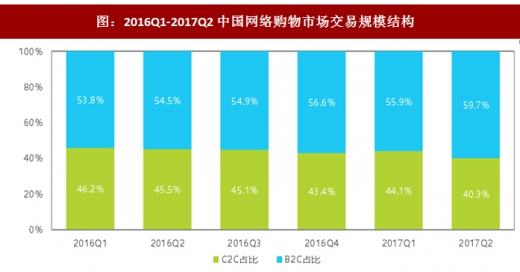 2017q2中国网购b2c占比持续扩大,达59.7%