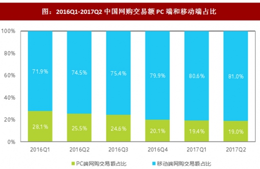 2017q2移动端交易额占比达81.%,渗透率持续提升