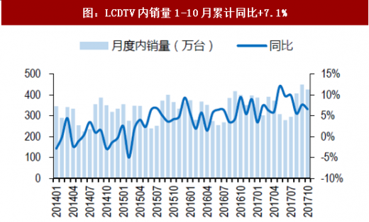 从lcdtv销量来看,自2016年12月起,同比增速持续为负,知道今年9月,增速年内首次转正,2018年,黑电有望触底反弹。