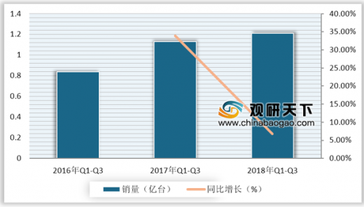 2018年,由于我国房地产销售下滑滞后对家电销售产生影响及2017年销售增速较快,导致需求提前释放等影响,我国空调产销量增速同比出现明显下降。统计数据显示,2018年1-9月我国家用空调累计产量为1.21亿台;销量1.23亿台,同比增长7.02%
