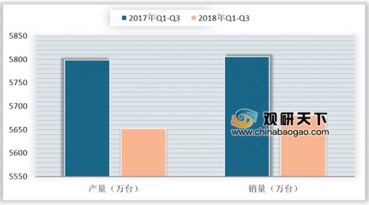 随着下游需求日益饱和,近年来我国冰箱市场持续较为低迷。2018年受市场环境变化影响,冰箱产销量再次下滑。根据产业在线数据显示,2018年1-9月我国冰箱产量5652.50万台,同比下降2.59%;销量5681.10万台,同比下降2.20%。