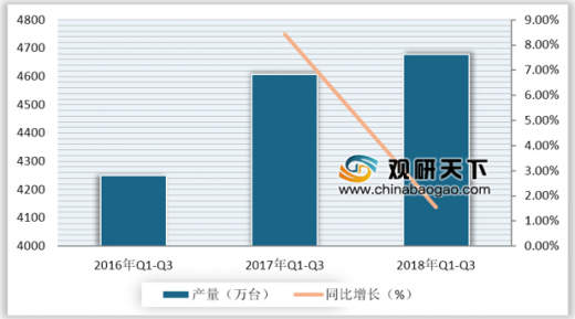 2018年,我国市场仍延续2017年需求低迷态势,且受销售回落及贸易环境变化、汇率波动等因素影响,我国洗衣机市场增速呈现下滑态势。根据产业在线数据显示,2018年1-9月,我国洗衣机累计产量4679.20万台,同比增长1.55%;销量4759.50万台,同比增长2.58%。