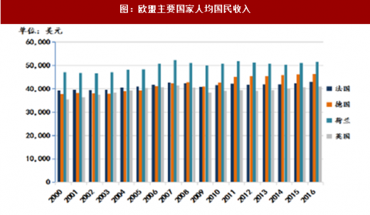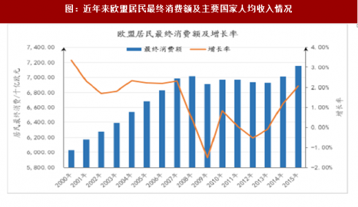 家居用品主要出口国为欧洲,因此公司产品出口受到欧洲宏观经济影响较大。欧盟作为世界第二大经济体,经济水平一直处于世界领先水平,庞大的经济总量和高水平的国民收入水平,带动了家居类等零售消费类产品的需求保持在较高的水平。如下: