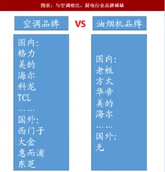 消费者愿意为值得信赖的厨电品牌支付更高的价格,而相比于白电市场,厨电行业有明显的品牌稀缺性。例如在空调市场,国内品牌有格力、美的、海尔、tcl等;国外品牌有西门子,大金、惠而浦、东芝等十多个品牌,这些品牌都是深耕空调市场很多年的知名品牌。而厨电特别是油烟机市场,长期国内知名的品牌仅有老板以及方太,这一点可以从油烟机各品牌的份额可以看出来。华帝在历史上曾经实施激进的价格策略,曾强制经销商对折销售,激进的销售政策降低了品牌价值,也削弱了消费者对其品牌的信任度。而美的、海尔都是近年来进入油烟机市场的白电龙头,用了多年时间才逐步培养起消费者对其厨电产品的信任度。