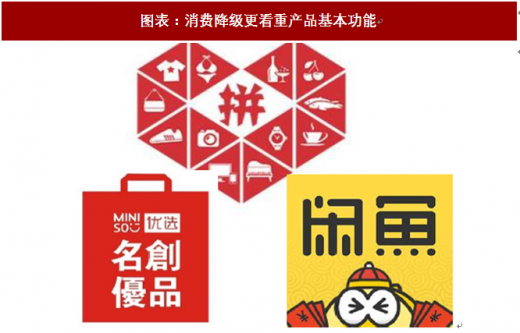消费降级:拼多多 名创优品 闲鱼=团购 低价日用品店 二手货交易平台,本质是年轻一代对基本功能性的诉求。