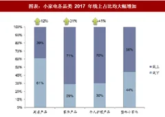 目前中国的小家电市场,在众多高技术含量新品导入的同时,早期原有品类仍占据较大规模,如传统电饭煲、电压力锅、、,及已处于成长期的空气净化器、吸尘器等。该类产品销售渠道已逐步转移至线上。家电产品的发展遵循着“人工 电器导入电器普及产品升级”的发展规律,事实上,对于小家电的刺激冲动型消费模式,随着产品实现导入之后的各阶段,线上渠道均将发挥更大作用。