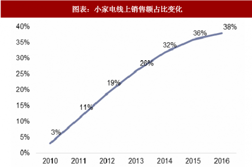 线上渠道占比持续上升,将成为小家电主要渠道。由于小家电品类复杂,不同口径下z占比偏差较大。按 gfk的 2017 年数据,小家电整体线上占比已达 56%,其中厨房产品、家居产品、个人护理产品线上份额分别同比上升 12%、31%和 41%。而按照智研咨询口径,线上销售份额增长趋势确定,但至 2016 为止占比仍为 38%。我们判断,对于具有冲动消费属性的小家电市场,线上渠道成为主体将成未来趋势。目前线下销售(尤其是厨电)占比大,主要与高端新产品的线下导入有关,随着新产品市场信心的建立和线上低端产品逐步退出,小家电线上占比将进一步扩大。