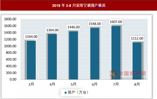 2018年8月,各地气温突破近年新高,与火热的天气相比,空调市场却遇冷。8月家用空调行业排产约为1112万台,较上月1607万台的排产量来说下滑30.8%。
