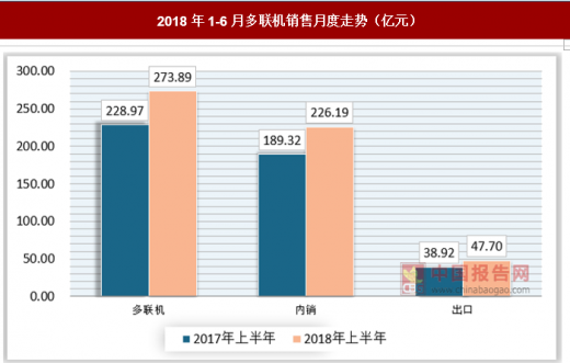 通过对于2018年上半年多联机的销售情况发现,2018年上半年多联机的销售增速放缓,其主要原因是受调控的影响,使得2018年的家装零售市场持续乏力,导致上半年家装零售市场渠道发展低于预期,从而影响整体中央空调市场,使得其增长速度放缓,进而导致多联机市场也逐步微米,多联机市场也进入上升瓶颈期。